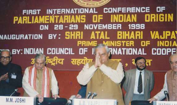 The First ever International Conference of PIO Parliamentarians was held on 28-29 November 1998. It was inaugurated by thel then Prime Minister of India, Shri Atal Bihari Vajpayee. 34 Parliamentarians from 8 countries including Speaker of Mauritius and 8 Ministers from different countries attended the conference.