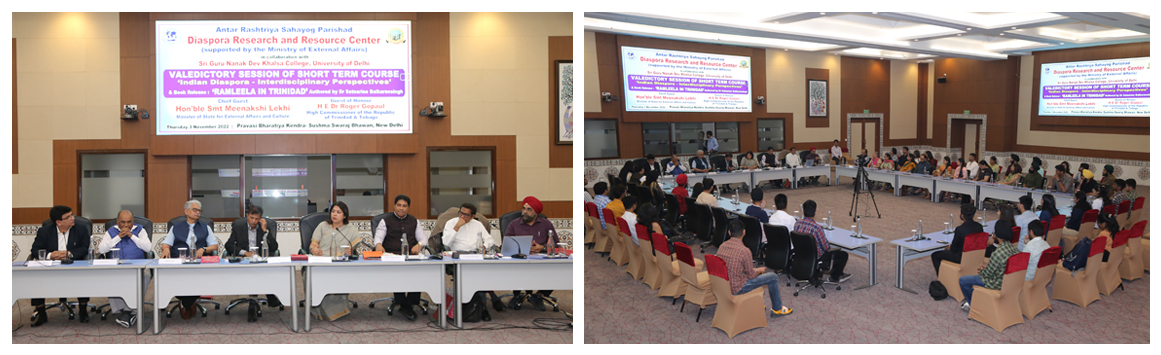 The valedictory session of the course was organized on 3 November 2022 at Pravasi Bharatiya Kendra, Sushma Swaraj Bhawan. Smt Meenakshi Lekhi, Hon’ble Minister of State for External Affairs and Culture was the Chief Guest of the event. H.E. Dr Roger Gopaul, High Commissioner of the Republic of Trinidad & Tobago was the Guest of Honour. Gathering was also addressed by Amb. Virendra Gupta, President, ARSP, Shri Shyam Parande, Dr. Gurmohinder Singh, Prof. Gopal Arora, and Shri Narayan Kumar.